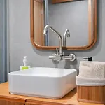 Bathroom facilities also include a separate toilet, a shower, and a washing machine. There are a hair dryer for guests' comfort.
